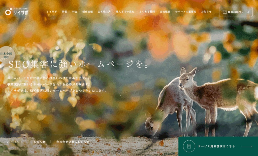 主なサービス内容 | SEO集客に強いサブスクリプション型ホームページ作成サービス「リイサポ」を提供しています。コンテンツSEO、ブログ運用、ロングテールキーワード戦略を得意としています。 |