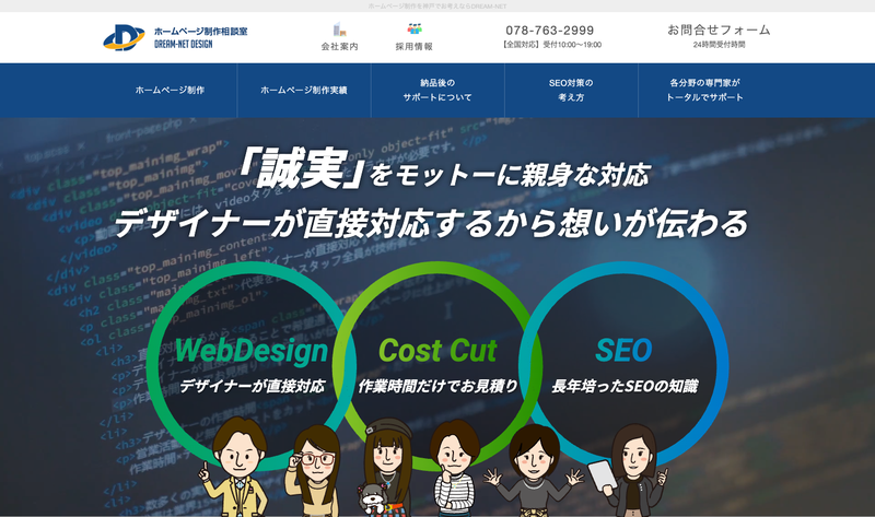 ドリームネットデザイン株式会社神戸市東灘区SEOに強いWebデザイン5.5万円~営業不在、全スタッフがデザイナー、直接対話モデル