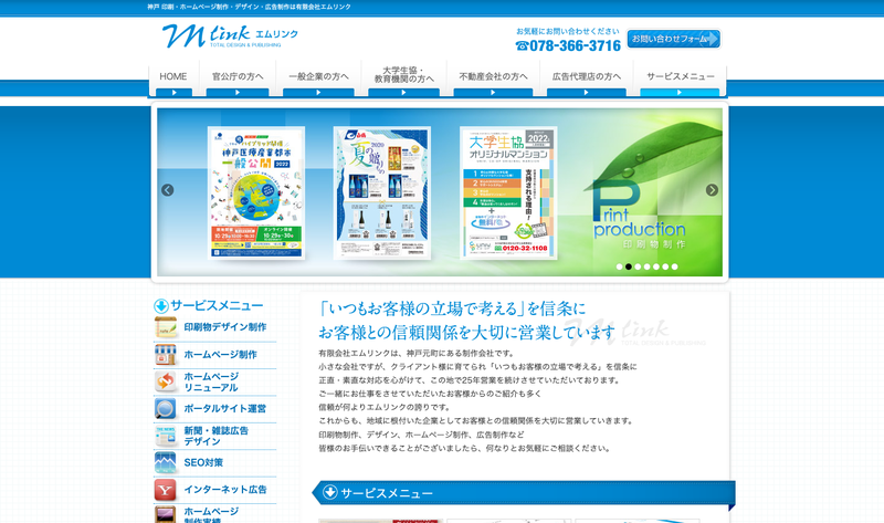 有限会社エムリンク神戸市中央区不動産業界、Web制作全般5.5万円20年以上の実績、不動産ポータル自社運営