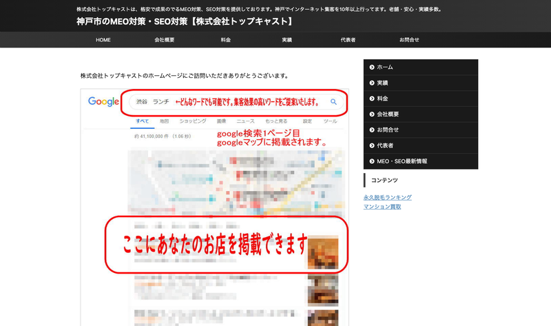 株式会社トップキャスト神戸市兵庫区MEO対策、小規模事業者向け1.98万円~明朗会計、契約期間の縛りなし、低価格モデル
