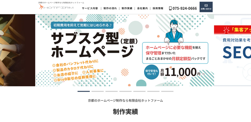 | 主なサービス | SEO特性・PR力の高いホームページ制作、WordPressカスタマイズ、コンテンツ制作 |