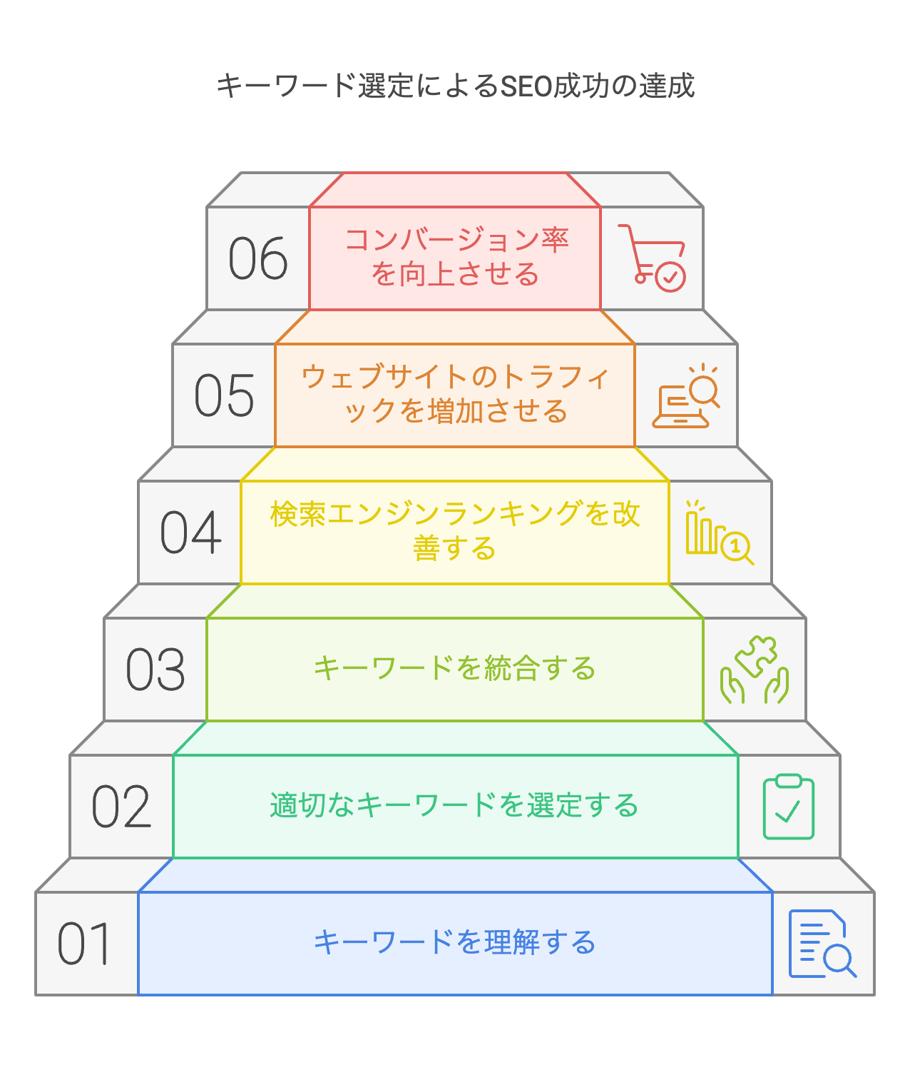結論:キーワード選定は、SEO対策の「土台」となる非常に重要なプロセスです。 ユーザーの検索意図を理解し、適切なキーワードを選定することで、検索エンジンからの評価を高め、上位表示を実現できます。この記事で解説した内容を参考に、効果的なキーワード選定を行い、SEO対策を成功させましょう。そして、常に最新のSEO情報をキャッチアップし、変化に対応していくことが重要です。